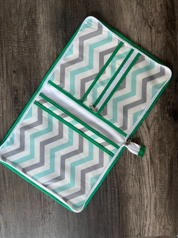 Carpeta A4 realizada en tela y forrada con hule lo que la hace SÚPER DURADERA y ANTIMANCHAS.
